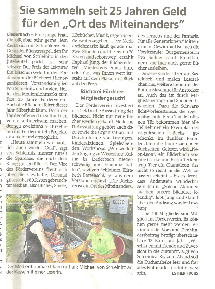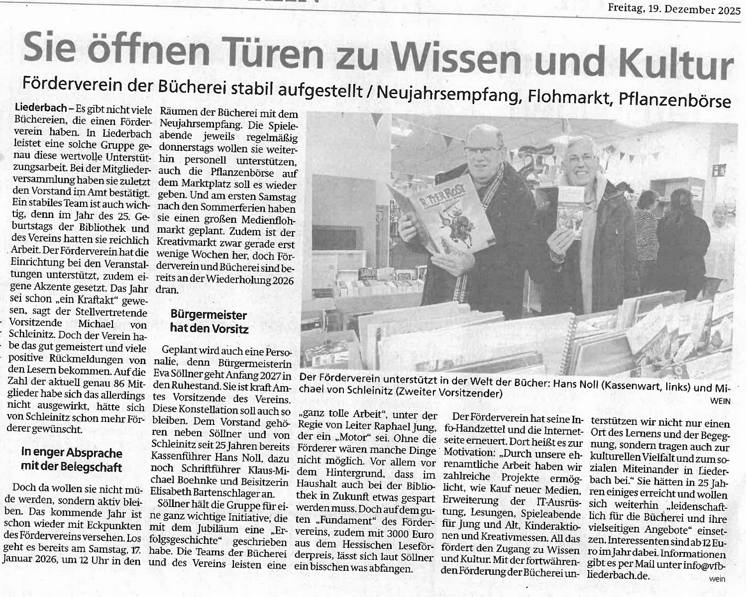 Aktuelle Nachrichten und Informationen rund um den Förderverein der Bücherei Liederbach.